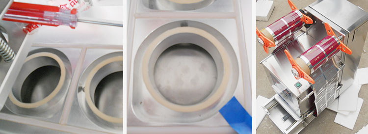 碗面封口機有手動、半自動供用戶選擇,適用于杯子,塑料杯、塑料碗、紙杯、紙碗的封口,可根據客戶的需求來定做。下圖為保定包裝機械碗面封口機的產品細節圖: