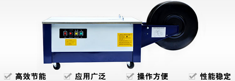 SK-3型低臺(tái)型打包機(jī)使用范圍廣,不管大小包裝,不用調(diào)整機(jī)器就可以打包