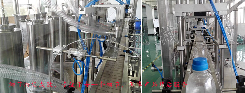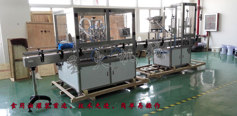 這款食用油灌裝生產線是我司較新研制的灌裝生產線設備,是由四頭灌裝機、自動旋蓋機、貼標機、噴碼機等相關的配套設備組成完善的高效的生產線,是針對食用油類的液體物料灌裝生產所研究設計的組合方案,廣泛適用灌裝于各種油類,如大豆油、潤滑油、食用油、桶裝酒等各個產品及行業需求中,為液體產品行業的發展向前推進一步。以下圖中就是客戶車間使用食用油灌裝生產線的大致情況