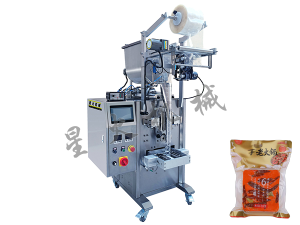 提前接通全自動小型包裝機電源,并確保電壓的穩(wěn)定輸出,在小型立式辣椒醬包裝機的控制面板上,進行參數(shù)設(shè)定,尤其是定量規(guī)格、制袋長度、包裝溫度、封口時間等信息。打開U型儲料箱將所需包裝的辣椒醬備至在料箱中,蓋上蓋子注意保持辣椒醬的清潔,避免混入雜質(zhì),一切準(zhǔn)備就緒,按下全自動小型包裝機上的控制面板啟動按鈕,機器開始運行,此時,觀察機器的運行狀態(tài),尤其是物料的輸送是否順暢,定量是否準(zhǔn)確,一切處于正常狀態(tài)下,可持續(xù)進行包裝工作,在出料口,將包裝好的辣椒醬依次整理、堆放,便于后續(xù)的搬運和儲存。