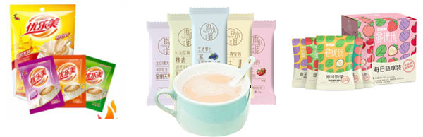 8、全套奶茶粉劑自動包裝機設備生產制袋,封口,包裝,打印日期一次性完成,工作環境清凈,噪音小。