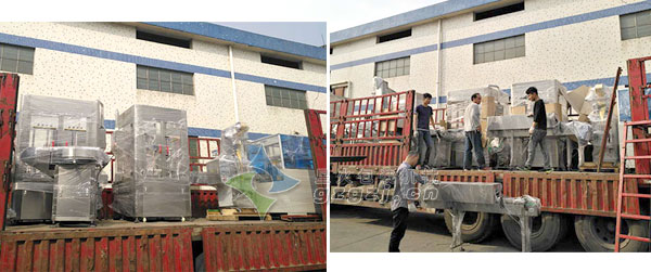深圳市興萬家實(shí)業(yè)有限公司訂購的瓶裝調(diào)料粉灌裝生產(chǎn)線正在裝車