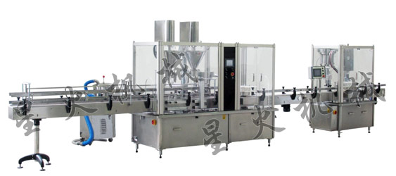 粉末灌裝旋蓋流水線集粉末充填旋蓋、電磁感應封口、雙面貼標、噴碼等功能為一體,自動完成粉末的充填包裝過程。該聯(lián)動線為顆粒粉狀等物料自動計量灌裝旋蓋貼標流水線,具有自動送罐、上料、計量、灌裝、旋蓋、封口、貼標、噴印等功能。所有與物料接觸部分均為不銹鋼,整線由PLC控制,伺服電機計量,具有精度高、速度快、貼標、噴碼清晰準確等優(yōu)點,適用于大多數粉末產品和特別產品的灌裝、旋蓋、貼標等包裝.