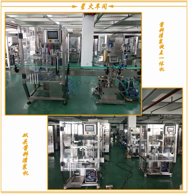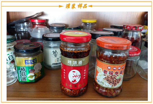 雙頭醬料灌裝旋蓋一體機是星火包裝機械自主研發的新型集灌裝,真空旋蓋于一體的全自動灌裝旋蓋一體機。該機適用于辣椒醬、香菇醬等醬類灌裝然后真空旋蓋,自動化程度高,機器能完成自動灌裝、自動取蓋上蓋,自動真空封蓋封口 醬料灌裝機適用于調味品中帶顆粒并且濃度較大的辣椒醬、豆瓣醬、花生醬、芝麻醬、果醬、牛油火鍋底料、紅油火鍋底料等較為粘稠醬類的灌裝